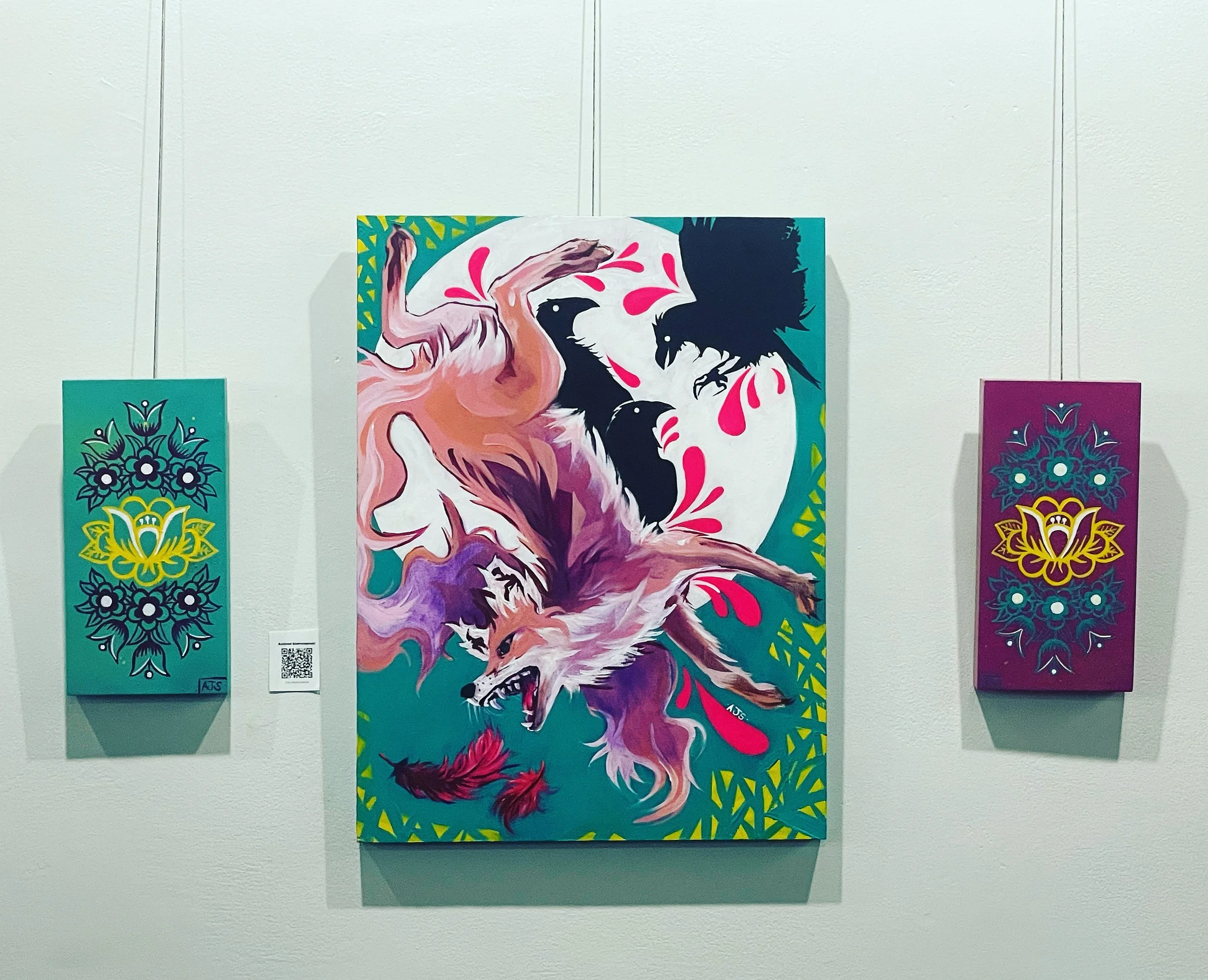 "Nie Wywołuj Wilka z Lasu," a mixed media painting featured in the 2022 City Walls Detroit group show, is a bold exploration of folklore, resilience, and community. The title, translating to "Don’t Call the Wolf Out of the Forest," captures the tension between caution and courage, a theme echoed in both the visual composition and the narrative it represents. Through layered textures, vibrant hues, and symbolic imagery, this piece weaves traditional Polish sayings into a contemporary urban context. Showcased as part of the year-end celebration of murals with City Walls Detroit and fellow artists, this painting marked the culmination of a remarkable year dedicated to transforming public spaces through art. It reflects the collaborative spirit and the shared energy of a community that values both its heritage and its future.